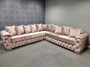 Ashton Chelsea Chesterfield 5 Seater Corner Sofa Pink Plush Velvet