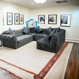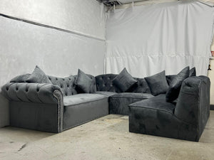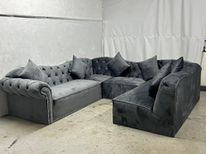 Elegance Chesterfield Sloane Fixed Seats Customise Size 8 Seater Corner U-Shape Sofa In Plush Grey