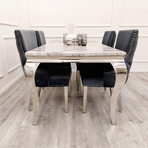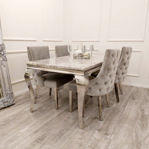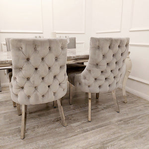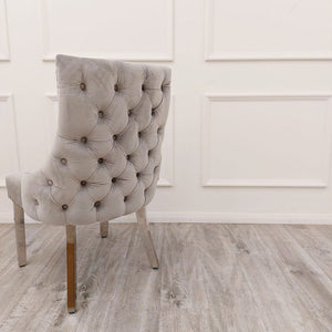 Our Kensington Velvet Dining Chair features Chrome stud detailing, our signature Chrome legs and a super luxurious deep buttoned back.