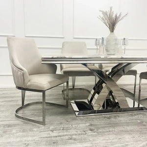 {"id":15430290669948,"title":"Chelmsford Velvet Dining Chair","handle":"chelmsford-velvet-dining-chair","description":"\u003cp\u003eOur Chelmsford Velvet Dining Chairs are the epitome of modern design. Featuring a sleek and sturdy metal base and padded velvet seat that cradles you, this chair is perfect for dining spaces that make a statement. Note the vertical ribbed stitch design across the back elevating this chair further. The ultimate contemporary vibe. \u003c\/p\u003e\n\u003cp\u003e\u003cstrong\u003e\u003cspan\u003eWhat you need to know about our Chelmsford Dining Chairs:\u003c\/span\u003e\u003c\/strong\u003e\u003c\/p\u003e\n\u003cp\u003e\u003cspan\u003e• Dimensions: Height 98cm, Width 57cm, Depth 60cm\u003c\/span\u003e\u003c\/p\u003e\n\u003cp\u003e\u003cspan\u003e• High Quality gold stainless steal base \u003c\/span\u003e\u003c\/p\u003e\n\u003cp\u003e\u003cspan\u003e• Premium High Quality Material - UK Fire Resistant Tested\u003c\/span\u003e\u003c\/p\u003e","published_at":"2025-07-08T16:25:08+01:00","created_at":"2025-07-08T16:25:22+01:00","vendor":"Ray-Furniture","type":"dinning chair","tags":["Chesterfield chair","dinning chair","fabric chair"],"price":18900,"price_min":18900,"price_max":18900,"available":true,"price_varies":false,"compare_at_price":null,"compare_at_price_min":0,"compare_at_price_max":0,"compare_at_price_varies":false,"variants":[{"id":55524434379132,"title":"Silver Frame","option1":"Silver Frame","option2":null,"option3":null,"sku":null,"requires_shipping":true,"taxable":true,"featured_image":{"id":75168874037628,"product_id":15430290669948,"position":1,"created_at":"2025-07-08T16:25:22+01:00","updated_at":"2025-07-08T16:25:22+01:00","alt":null,"width":1000,"height":1000,"src":"\/\/rayfurniture.co.uk\/cdn\/shop\/files\/CHELMS_CR_CH_BACK_1024x1024_2x_9669c483-c281-4a06-b0d9-3afaafd4429a.webp?v=1751988322","variant_ids":[55524434379132]},"available":true,"name":"Chelmsford Velvet Dining Chair - Silver Frame","public_title":"Silver Frame","options":["Silver Frame"],"price":18900,"weight":0,"compare_at_price":null,"inventory_management":"shopify","barcode":"","featured_media":{"alt":null,"id":65259349868924,"position":1,"preview_image":{"aspect_ratio":1.0,"height":1000,"width":1000,"src":"\/\/rayfurniture.co.uk\/cdn\/shop\/files\/CHELMS_CR_CH_BACK_1024x1024_2x_9669c483-c281-4a06-b0d9-3afaafd4429a.webp?v=1751988322"}},"requires_selling_plan":false,"selling_plan_allocations":[]},{"id":55524434411900,"title":"Golden Franme","option1":"Golden Franme","option2":null,"option3":null,"sku":null,"requires_shipping":true,"taxable":true,"featured_image":{"id":75168874070396,"product_id":15430290669948,"position":2,"created_at":"2025-07-08T16:25:22+01:00","updated_at":"2025-07-08T16:25:22+01:00","alt":null,"width":1000,"height":1000,"src":"\/\/rayfurniture.co.uk\/cdn\/shop\/files\/CHELMS_CR_GLD_LEG_1024x1024_2x_19f275f6-e94b-45b9-9bbc-5b41abd4715c.webp?v=1751988322","variant_ids":[55524434411900]},"available":true,"name":"Chelmsford Velvet Dining Chair - Golden Franme","public_title":"Golden Franme","options":["Golden Franme"],"price":18900,"weight":0,"compare_at_price":null,"inventory_management":"shopify","barcode":"","featured_media":{"alt":null,"id":65259349901692,"position":2,"preview_image":{"aspect_ratio":1.0,"height":1000,"width":1000,"src":"\/\/rayfurniture.co.uk\/cdn\/shop\/files\/CHELMS_CR_GLD_LEG_1024x1024_2x_19f275f6-e94b-45b9-9bbc-5b41abd4715c.webp?v=1751988322"}},"requires_selling_plan":false,"selling_plan_allocations":[]}],"images":["\/\/rayfurniture.co.uk\/cdn\/shop\/files\/CHELMS_CR_CH_BACK_1024x1024_2x_9669c483-c281-4a06-b0d9-3afaafd4429a.webp?v=1751988322","\/\/rayfurniture.co.uk\/cdn\/shop\/files\/CHELMS_CR_GLD_LEG_1024x1024_2x_19f275f6-e94b-45b9-9bbc-5b41abd4715c.webp?v=1751988322","\/\/rayfurniture.co.uk\/cdn\/shop\/files\/CHELMS_CR_GLD_CLOSEUP_1024x1024_2x_848b5808-6181-49c5-bf52-050b4ec6003f.webp?v=1751988322","\/\/rayfurniture.co.uk\/cdn\/shop\/files\/CHELMS_CR_GLD_LIFESTYLE_1024x1024_2x_09c6b974-26ab-4837-aa89-aa8124bcfdf1.webp?v=1751988322","\/\/rayfurniture.co.uk\/cdn\/shop\/files\/CHELMS_CR_CH_CUTOUT.webp?v=1751988322","\/\/rayfurniture.co.uk\/cdn\/shop\/files\/CHELMS_CR_CH_LEG_1024x1024_2x_cbbc53b6-4f87-434e-ab4c-e370e8be8d7d.webp?v=1751988322","\/\/rayfurniture.co.uk\/cdn\/shop\/files\/MILAN-CHCLOSEUP002_1024x1024_2x_007c1359-7b34-4a5a-8a99-cd81092f00b1.webp?v=1751988322"],"featured_image":"\/\/rayfurniture.co.uk\/cdn\/shop\/files\/CHELMS_CR_CH_BACK_1024x1024_2x_9669c483-c281-4a06-b0d9-3afaafd4429a.webp?v=1751988322","options":["Color"],"media":[{"alt":null,"id":65259349868924,"position":1,"preview_image":{"aspect_ratio":1.0,"height":1000,"width":1000,"src":"\/\/rayfurniture.co.uk\/cdn\/shop\/files\/CHELMS_CR_CH_BACK_1024x1024_2x_9669c483-c281-4a06-b0d9-3afaafd4429a.webp?v=1751988322"},"aspect_ratio":1.0,"height":1000,"media_type":"image","src":"\/\/rayfurniture.co.uk\/cdn\/shop\/files\/CHELMS_CR_CH_BACK_1024x1024_2x_9669c483-c281-4a06-b0d9-3afaafd4429a.webp?v=1751988322","width":1000},{"alt":null,"id":65259349901692,"position":2,"preview_image":{"aspect_ratio":1.0,"height":1000,"width":1000,"src":"\/\/rayfurniture.co.uk\/cdn\/shop\/files\/CHELMS_CR_GLD_LEG_1024x1024_2x_19f275f6-e94b-45b9-9bbc-5b41abd4715c.webp?v=1751988322"},"aspect_ratio":1.0,"height":1000,"media_type":"image","src":"\/\/rayfurniture.co.uk\/cdn\/shop\/files\/CHELMS_CR_GLD_LEG_1024x1024_2x_19f275f6-e94b-45b9-9bbc-5b41abd4715c.webp?v=1751988322","width":1000},{"alt":null,"id":65259349967228,"position":3,"preview_image":{"aspect_ratio":1.0,"height":1000,"width":1000,"src":"\/\/rayfurniture.co.uk\/cdn\/shop\/files\/CHELMS_CR_GLD_CLOSEUP_1024x1024_2x_848b5808-6181-49c5-bf52-050b4ec6003f.webp?v=1751988322"},"aspect_ratio":1.0,"height":1000,"media_type":"image","src":"\/\/rayfurniture.co.uk\/cdn\/shop\/files\/CHELMS_CR_GLD_CLOSEUP_1024x1024_2x_848b5808-6181-49c5-bf52-050b4ec6003f.webp?v=1751988322","width":1000},{"alt":null,"id":65259349999996,"position":4,"preview_image":{"asp