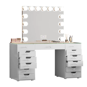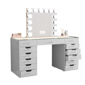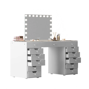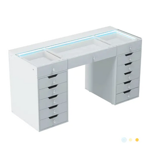 Luxury Ray Eva Vanity Makeup Desk - 13 Storage Drawers RGB Sensor Lights