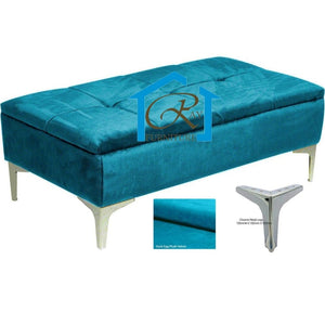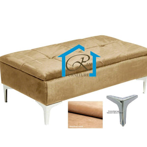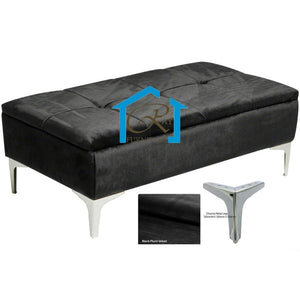 Stylish Ottoman box Velvet upholstered with Metal Chrome legs