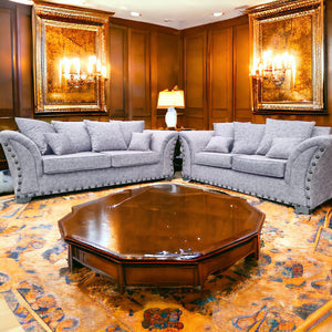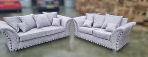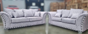 New Cambridge Buxton Fog Silver Fabric Sofas 3+2 Seater Comfy Couch