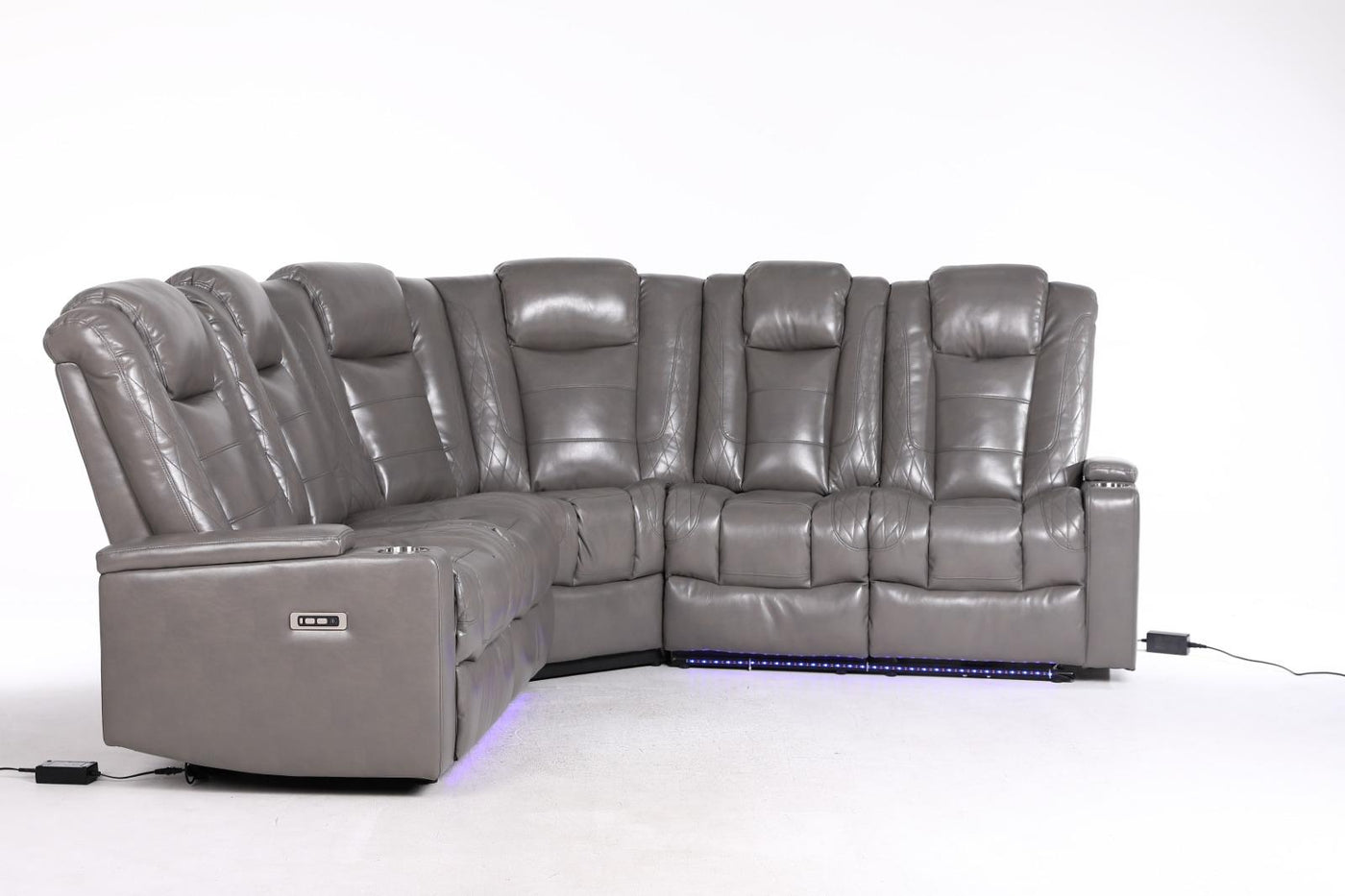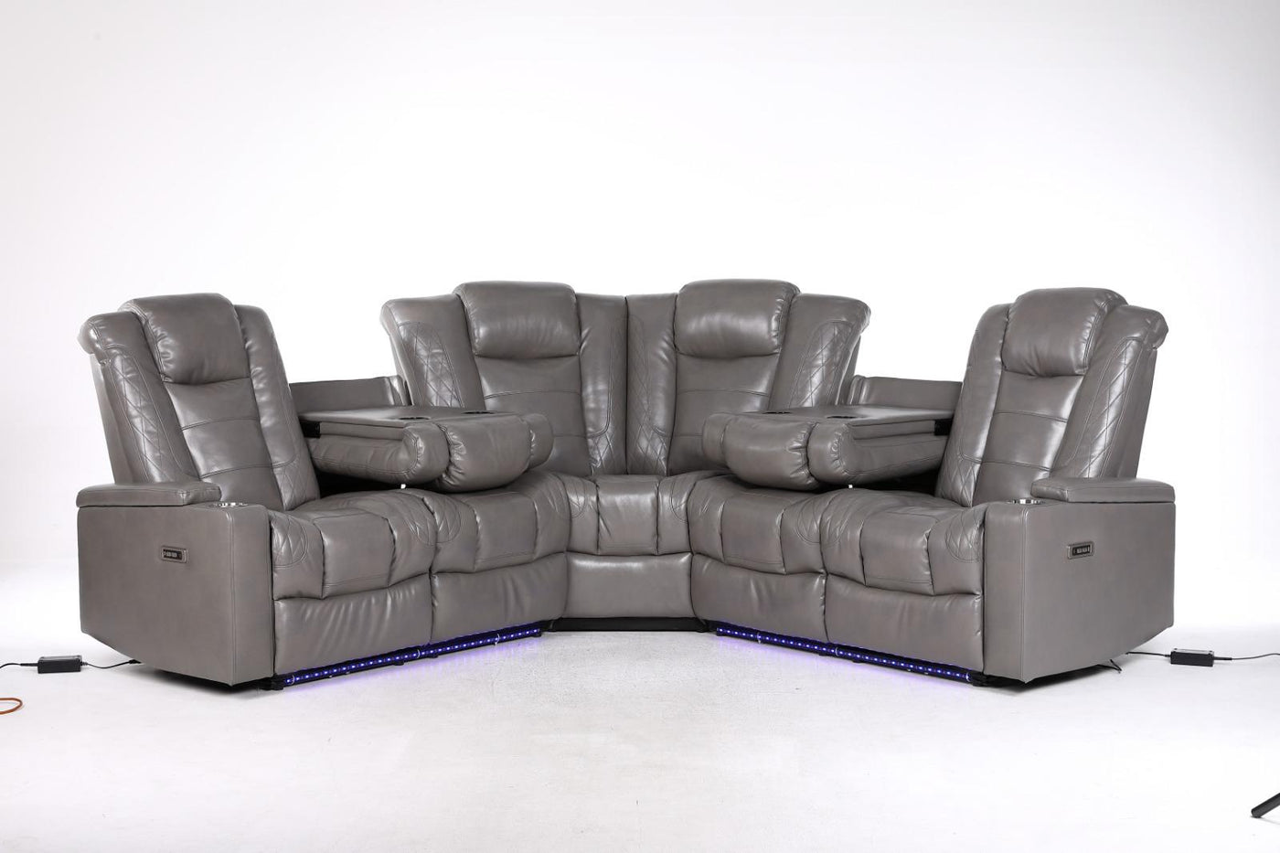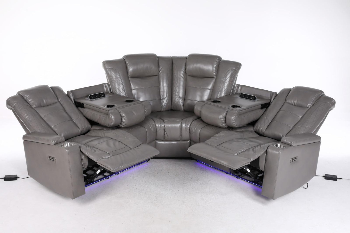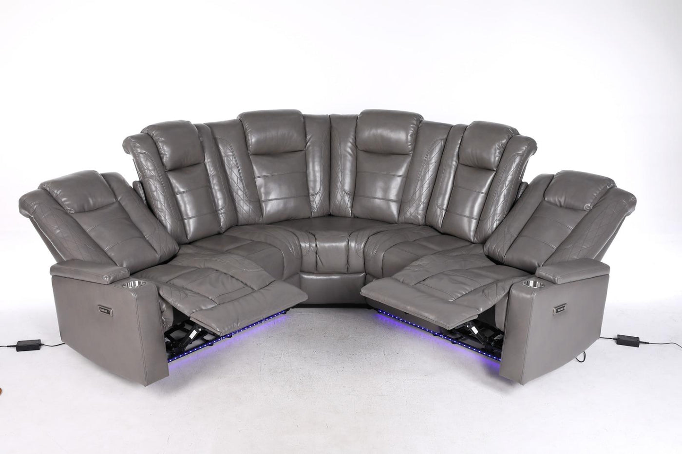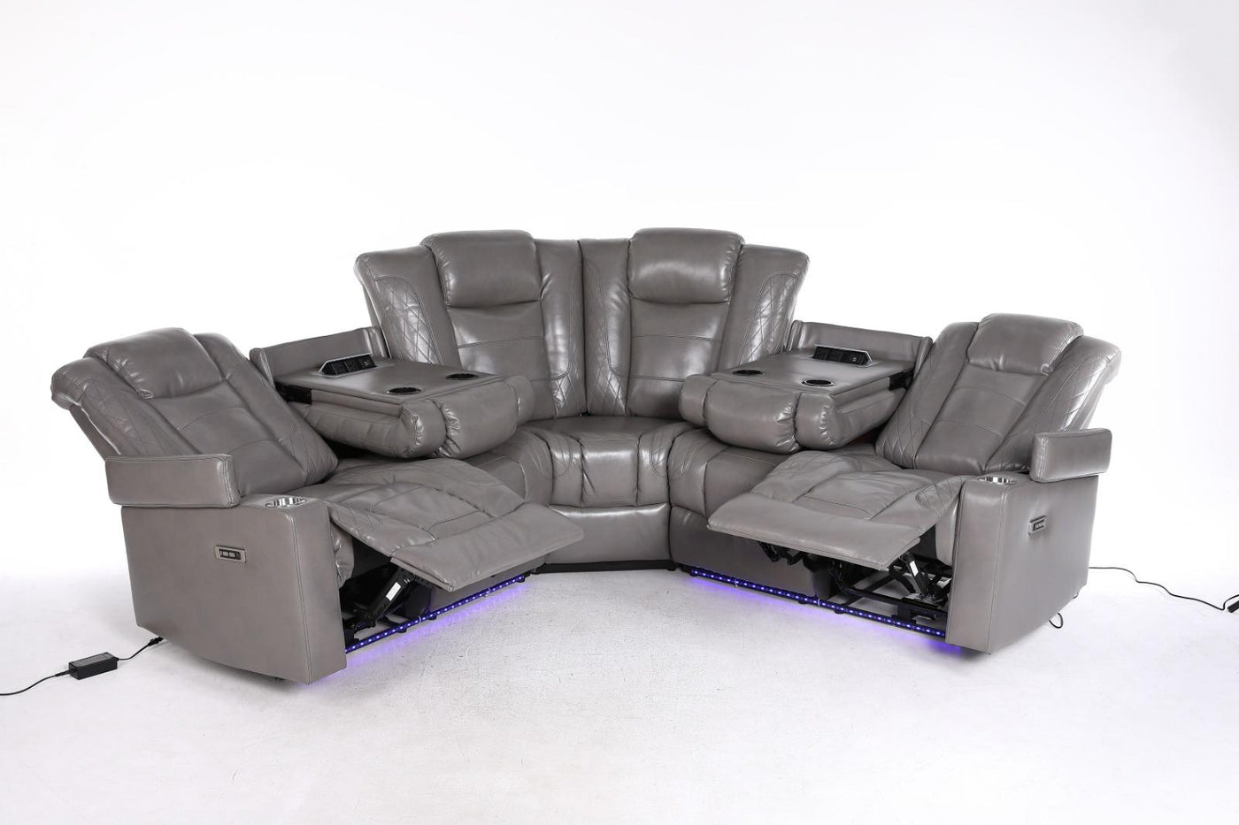 Ray Orlando - Electric Recliners Sofa With Cupholders - 5 Seater Corner Sofa Grey/LED Lights/Wireless Charging