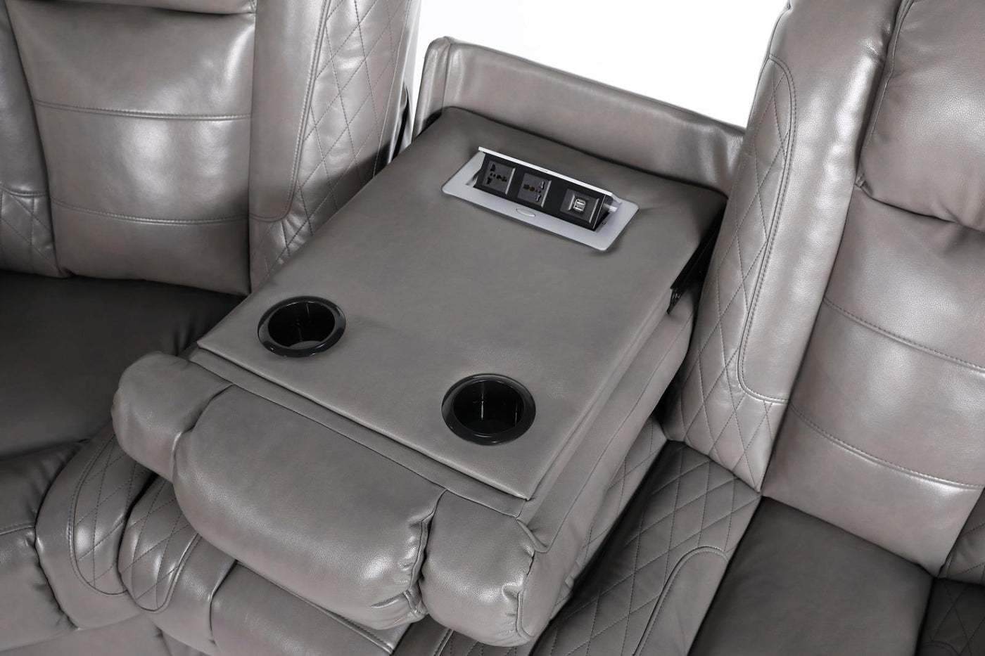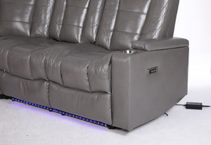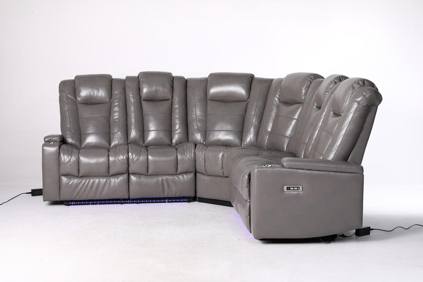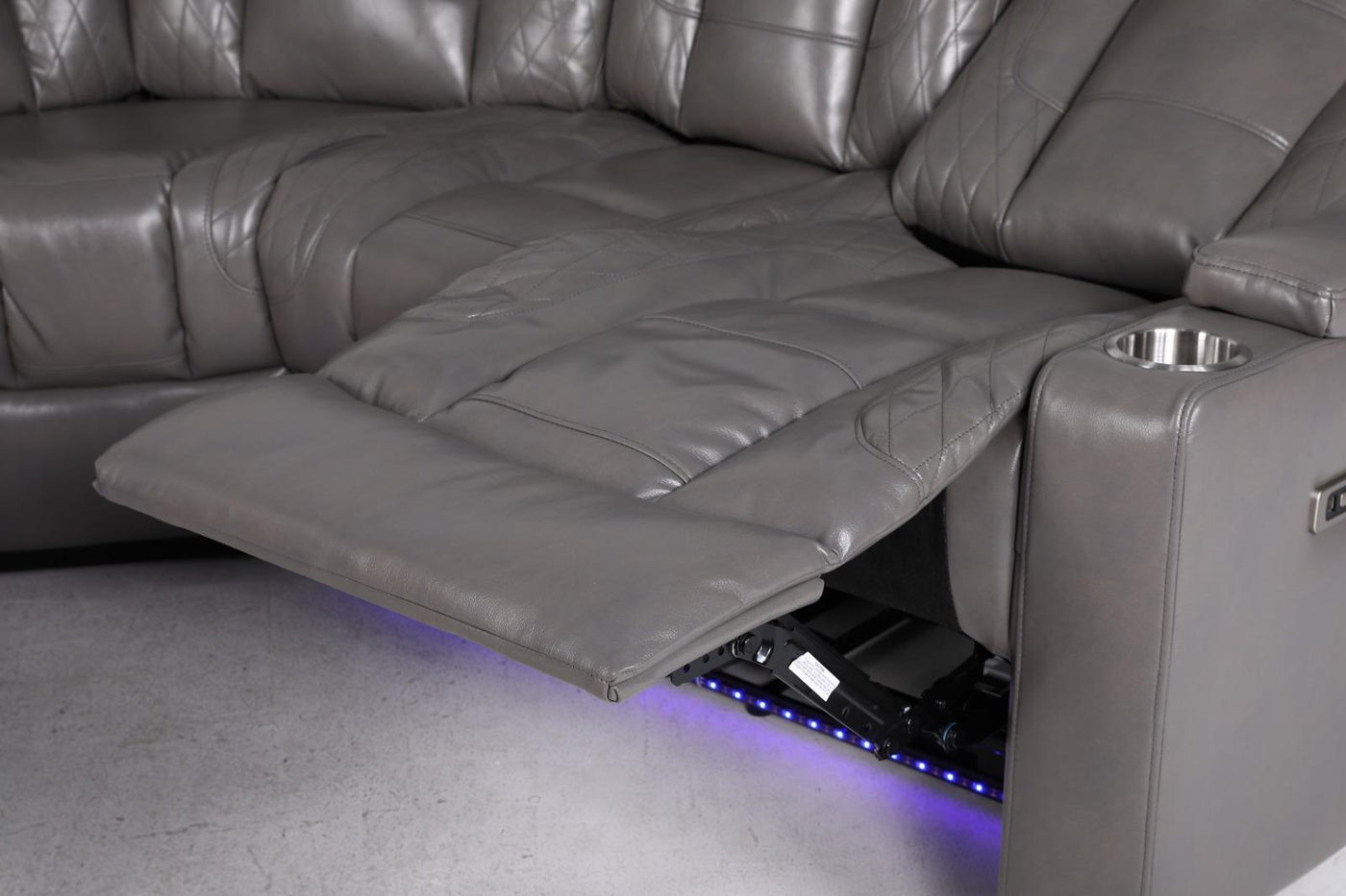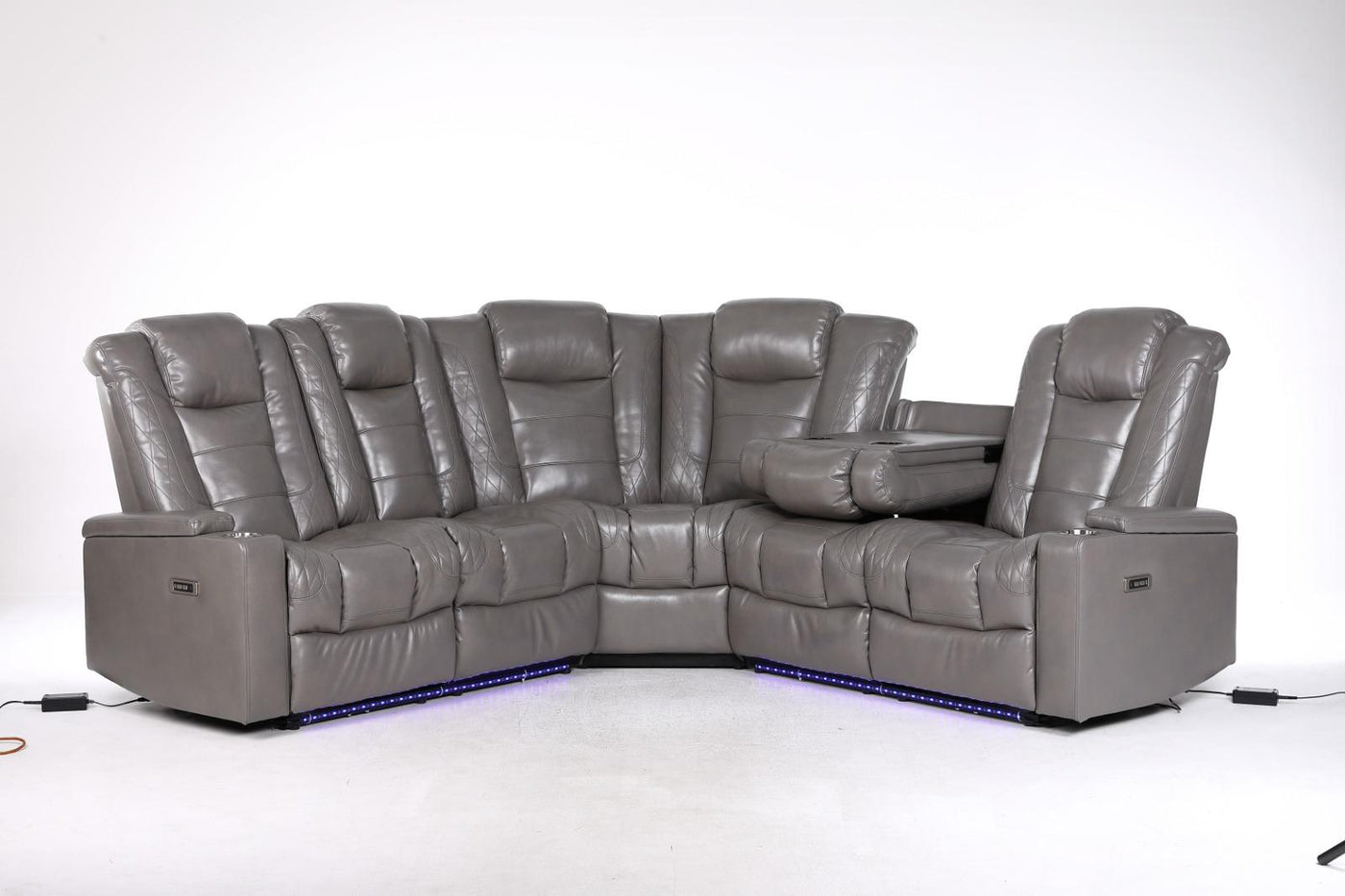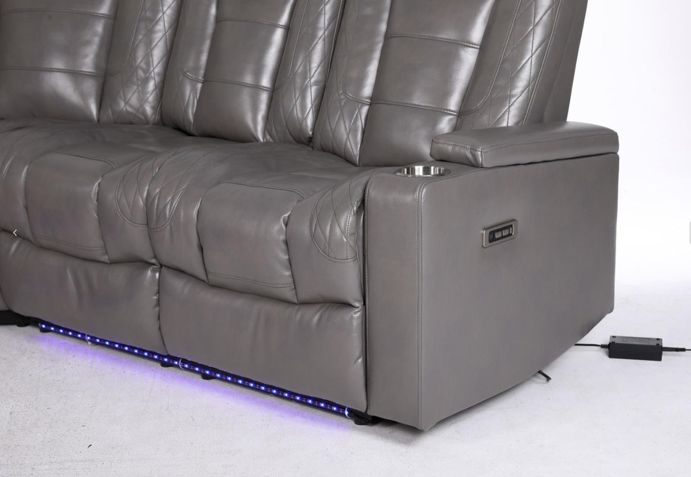 Ray Orlando - Electric Recliners Sofa With Cupholders - 5 Seater Corner Sofa Grey/LED Lights/Wireless Charging