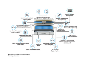 Experience unparalleled comfort and relaxation with the Prime Mattresses massage mattress. Featuring 3000 pocket gel springs, a 12-inch depth with pillow top memory foam, and a unique kneading massage function, this mattress is designed to relieve muscle tension, improve circulation, and promote better sleep. Made with hypoallergenic, breathable, and eco-friendly materials, it’s perfect for athletes and individuals with back pain. Enjoy easy control with the included remote and rest assured with its certified fire retardancy and durability for up to 5500 sessions. Available in single, double, and king sizes with dual massage units for the larger sizes.
