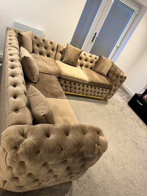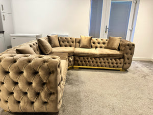 Khalifa New Luxury Chesterfield 5 Seater Round Arm Corner Couch Mink Plush Sofa