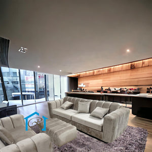 Luxurious multi density foam cushions to relax in comfort and style · Rich foam with clean lines · Built to last with premium fabrics, materials, and expert craftsmanship · A modern Ray furniture Penal sofa take on a traditional Chesterfield, the sofa is a statement - making piece of beautiful design. · Rich Fabric is channelled on both the inside and outside of the frame, a beautiful design detail that can be seen from any angle in a room.